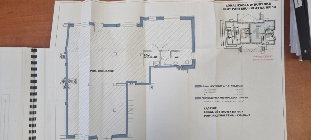 Pszczyńskie TBS Sp. z o.o. posiada do wynajęcia lokal usługowy zlokalizowany w Pszczynie przy ul. Bednorza 14 na parterze budynku. Lokal o powierzchni 136,20m2. Lokal składa się z dużej Sali, dwóch mniejszych pomieszczeń oraz dwóch ubikacji. Ściany malowane farbą emulsyjną. Podłogi-płytki ceramiczne oraz panele podłogowe. Media: prąd, gaz, woda -indywidualne liczniki. Ogrzewanie gazowe. Lokal wyposażony w klimatyzację. Niezależne wejście do lokalu z dwóch stron budynku. Istnieje możliwość wykupu lokalu na własność. Cena najmu 4 767 zł netto +23% VAT (35 zł / m2).